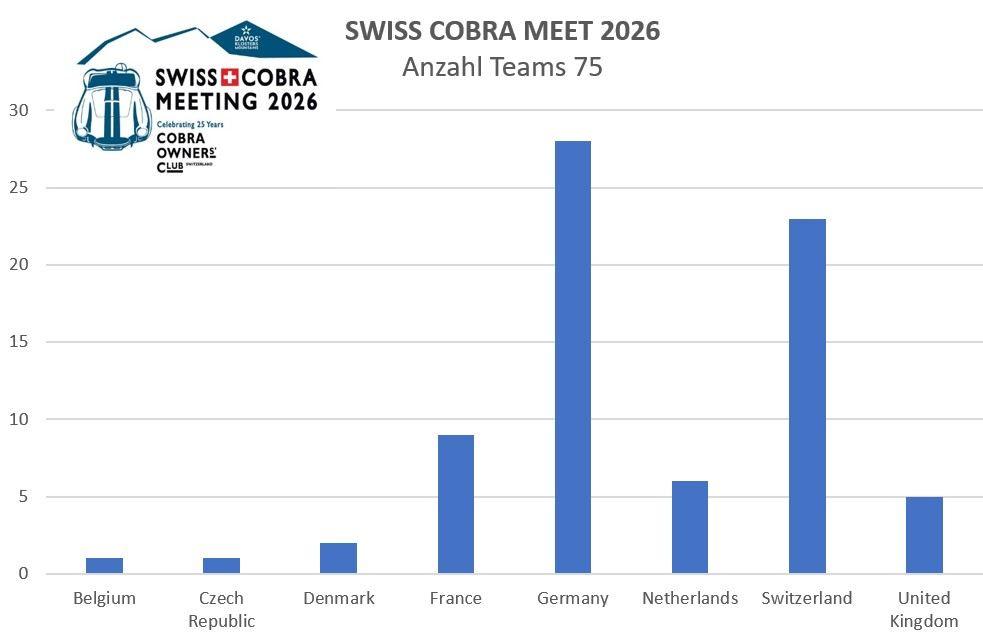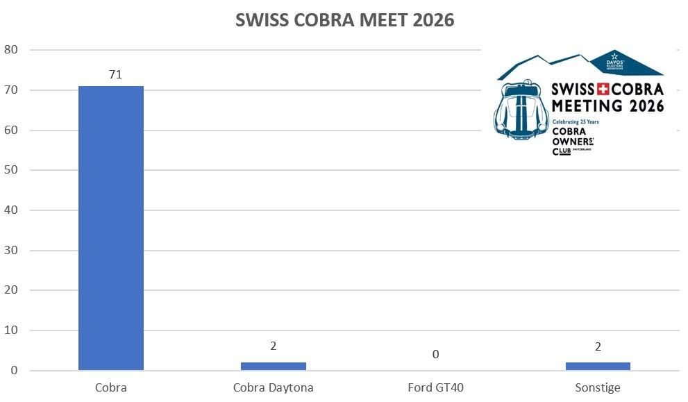 Le Cobra Owners' Club Switzerland fêtera son 25e anniversaire en 2026. Après le succès d'un meeting européen Cobra à Davos en 2018 et d'un Carroll Shelby Centennial Switzerland en 2023, le temps est venu d'organiser un "SWISS COBRA MEETING" (SCM), sous la forme d'un meeting de 4 jours avec une option Early Bird pour célébrer l'anniversaire du club. Nous nous adressons aux pilotes de Cobra, Cobra Daytona, GT40. Le club invite tous les Cobristis, même de l'étranger, à venir faire la fête avec lui et à passer 4 jours inoubliables à Davos. L'accent sera mis sur les passages de cols et les discussions sur l'essence autour d'un thème commun à tous : "Carroll Shelby et la Cobra ou la GT40". Notre événement se déroulera dans un hôtel déjà connu de nombreux Cobristis, mais qui a changé de propriétaire, passant du groupe Sunstar aux Davos Klosters Bergbahnen.